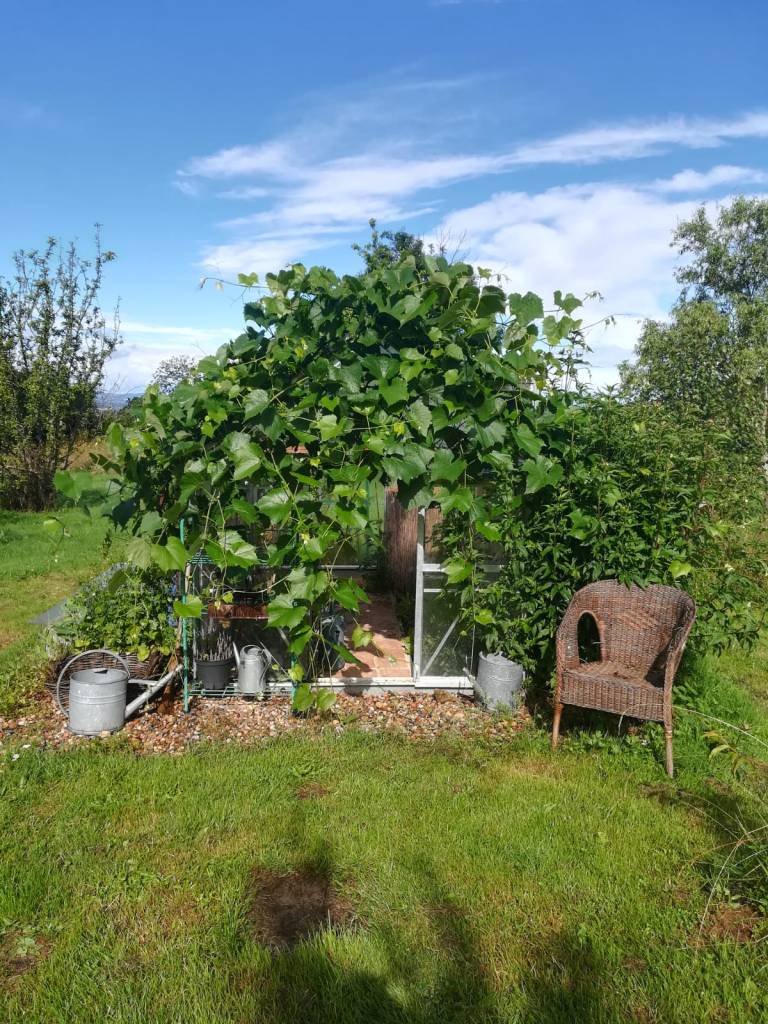 Suite à une réorganisation nécessaire à un meilleur fonctionnement de l’activité de vinification, la décision est prise: dire adieu à la petite serre, et la reconvertir en abri de jardin, pour libérer de l’espace vital pour le cuvage.