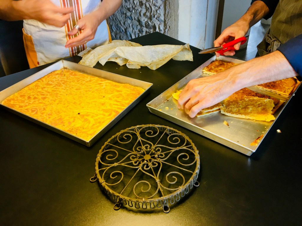 Exemples de préparations: Pasta avec pesto de saison, farinata (galette de farine de pois-chiches), salade autrement (panzanella, salade d’agrumes…), dessert végétal